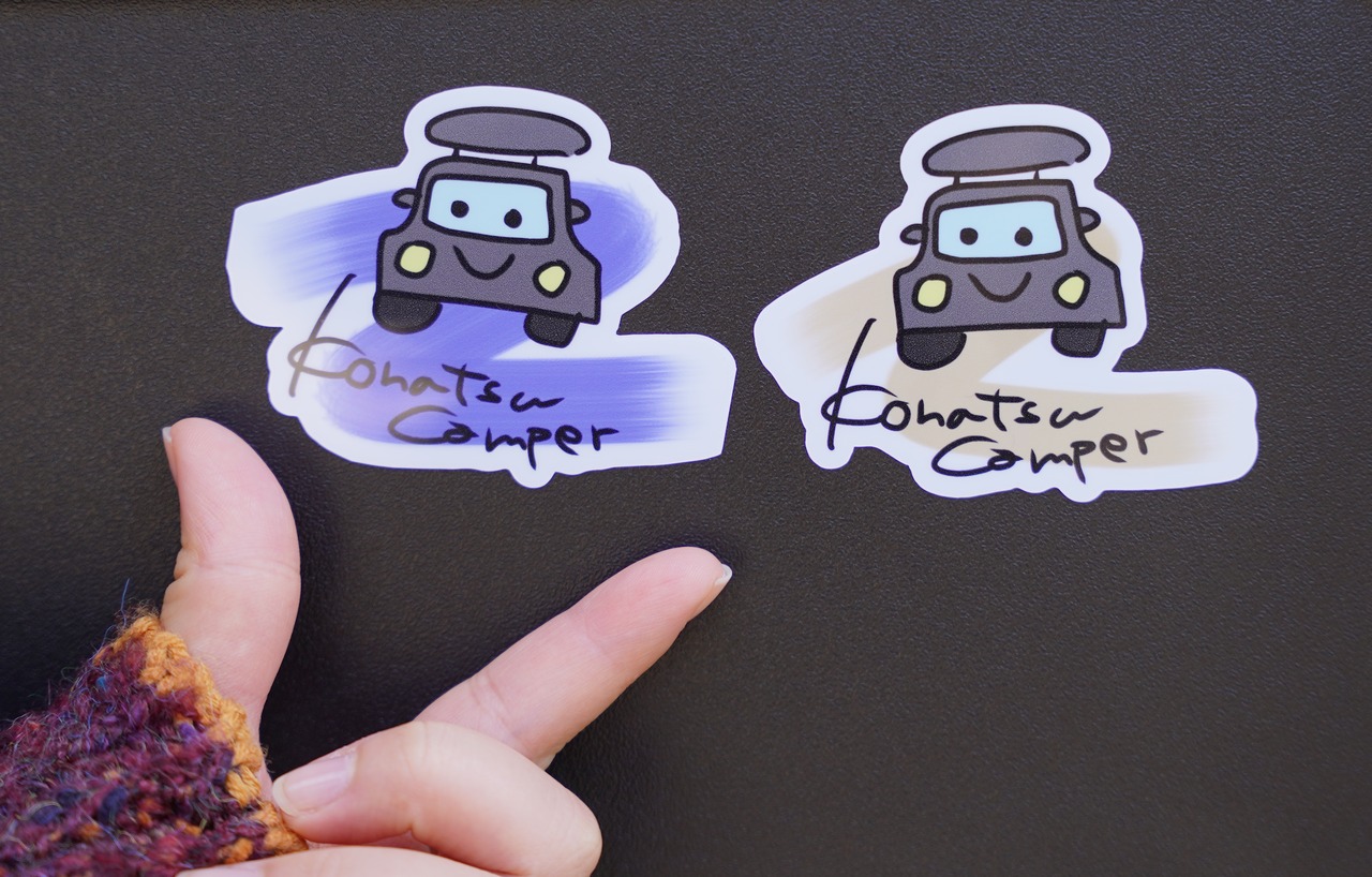 ツルッとした素材のステッカーです!相手もツルッとした素材なら比較的どこでも貼れます!